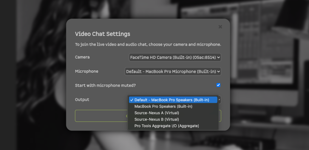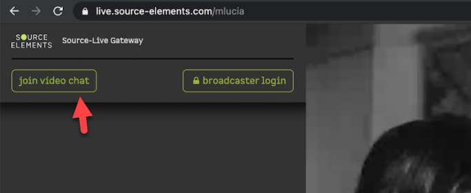 Si desea escuchar el audio de las personas que reciben su transmisión, todos deberán unirse al chat de video. Puede hacerlo haciendo clic en "unirse al chat de video" en Source-Live Gateway .