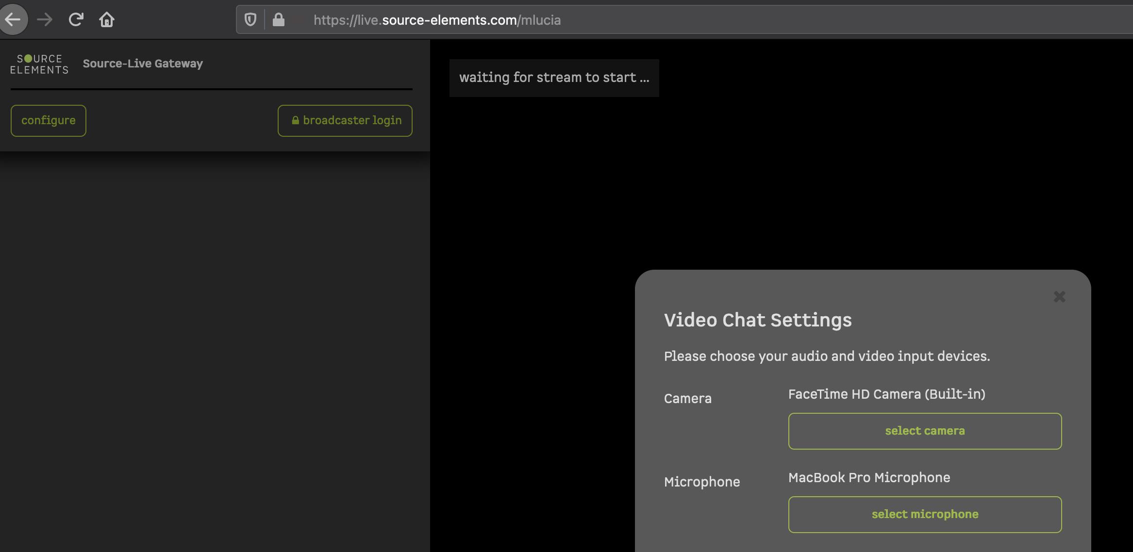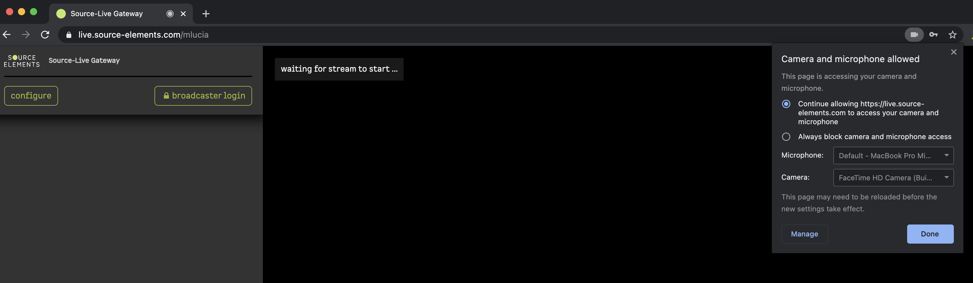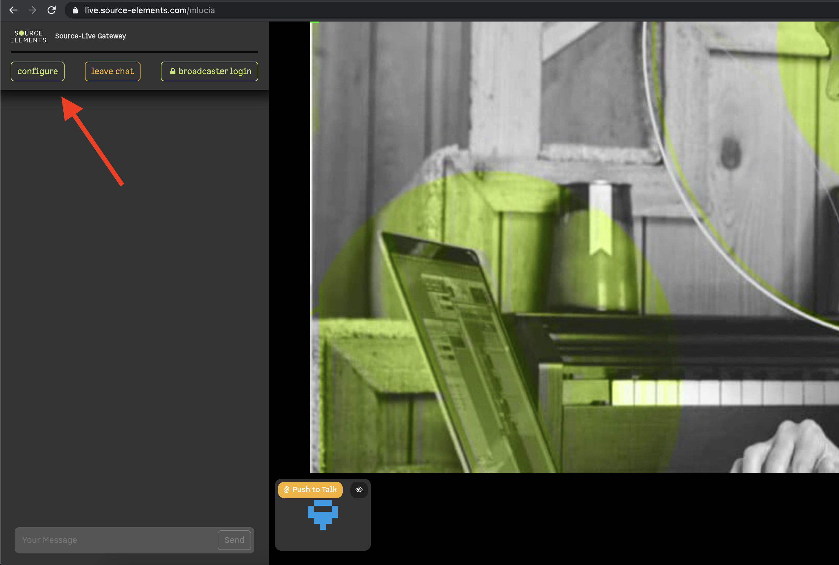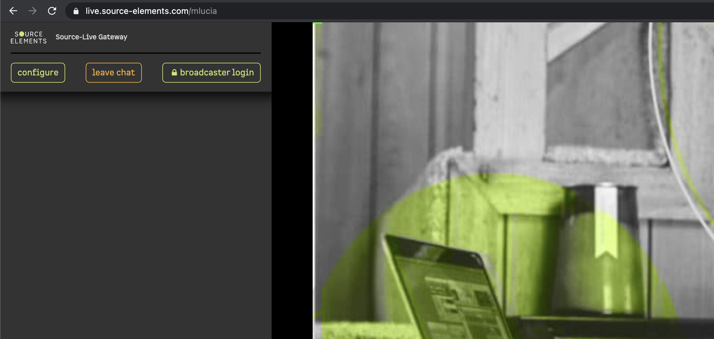 - Únase a la sesión navegando a https://live.source-elements.com/ , ingresando el nombre de la emisora en la esquina superior derecha y haciendo clic en "Ver ahora"