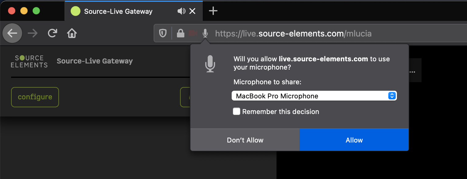 - Si live.source-elements.com está bloqueado, haga clic en "Permitir".