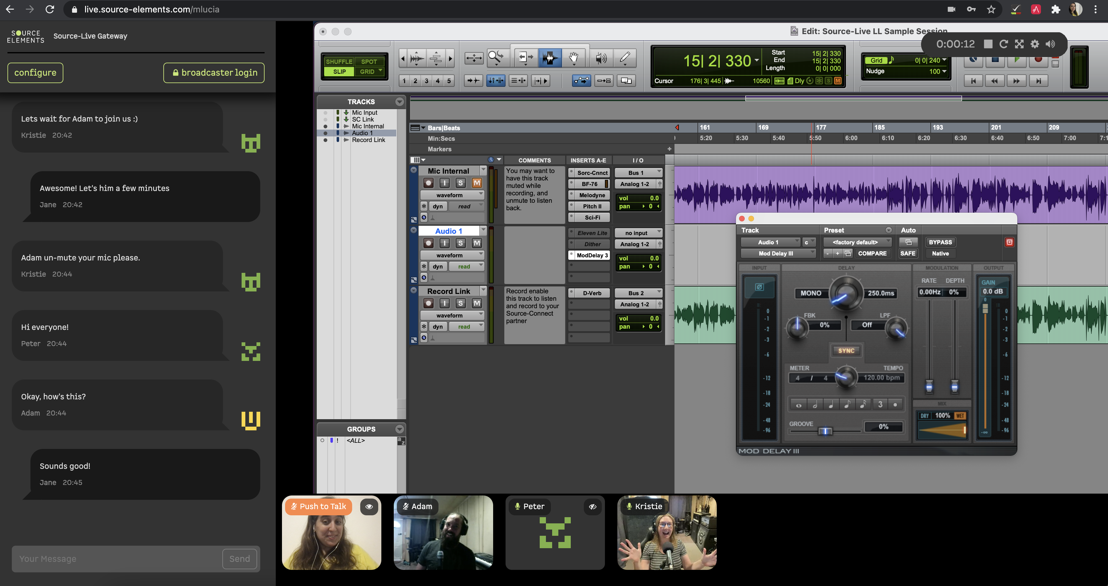 Permite audio y vídeo HD en tiempo real a través del software de transmisión Source-Live . Para escuchar su audio, los usuarios pueden acceder Source-Live Gateway a través de un navegador web en https://live.source-elements.com/.