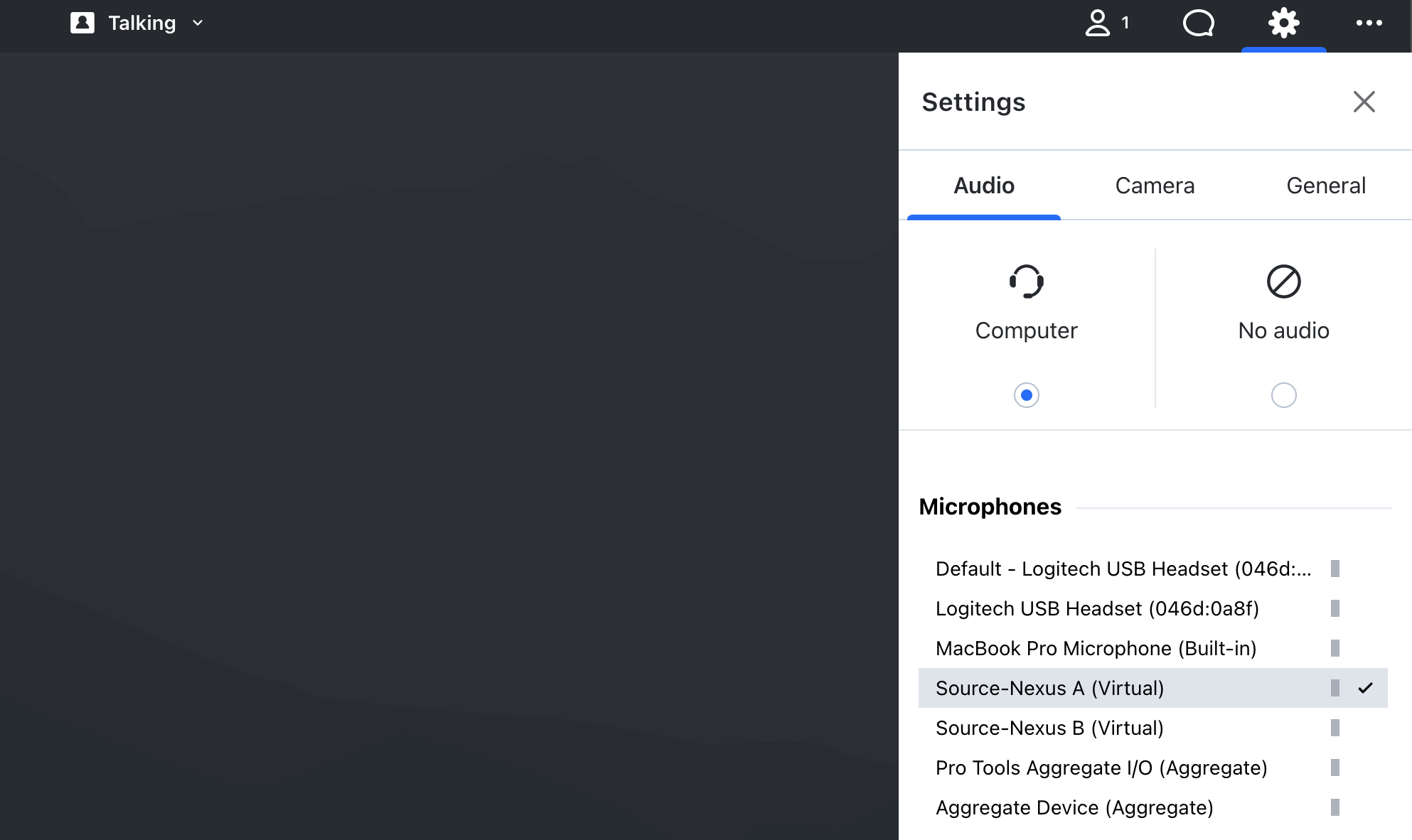- En GoToMeeting, elija Source-Nexus A como entrada de audio o micrófono.