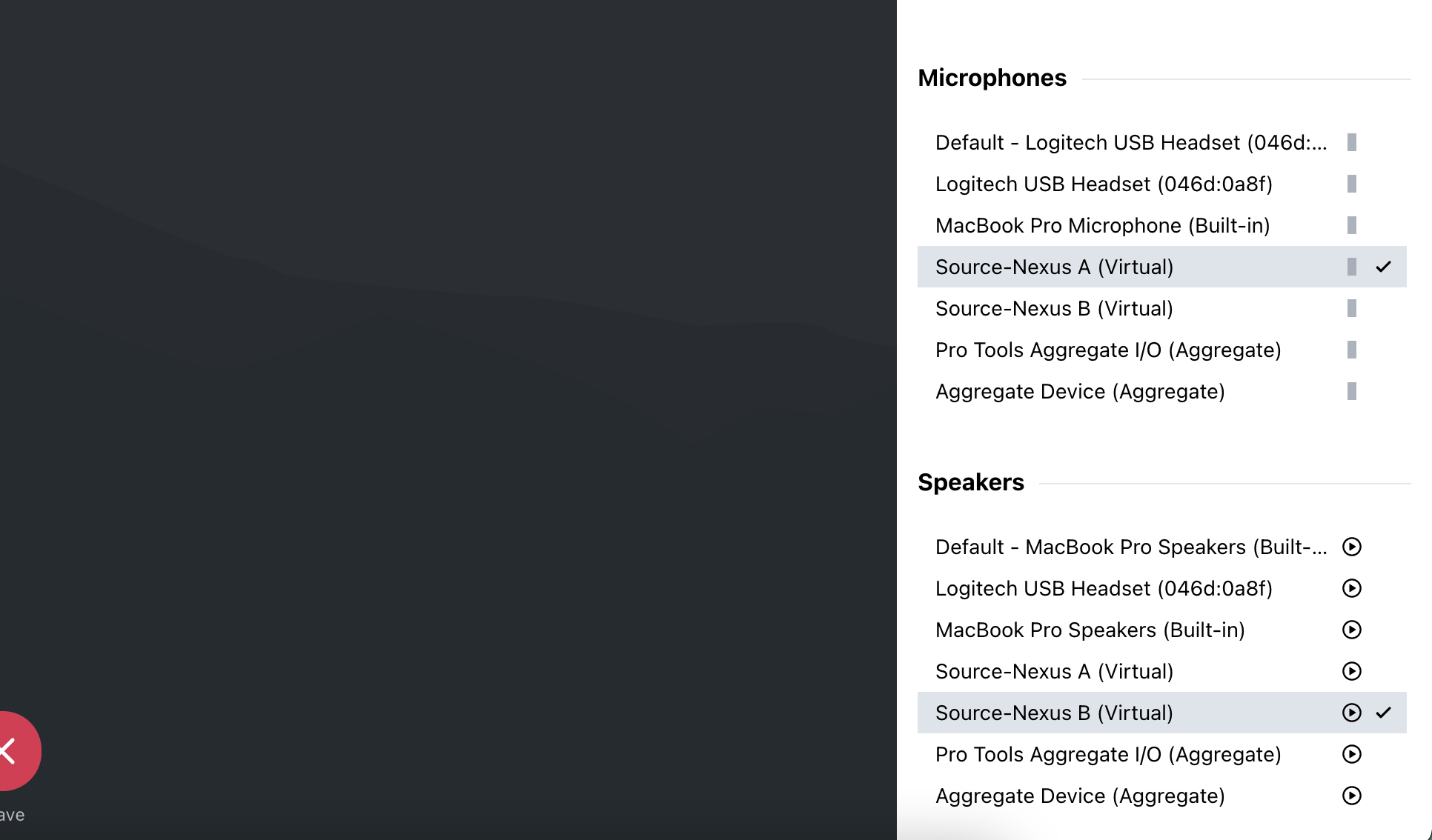 - En GoToMeeting, elija Source-Nexus B como salida de audio.