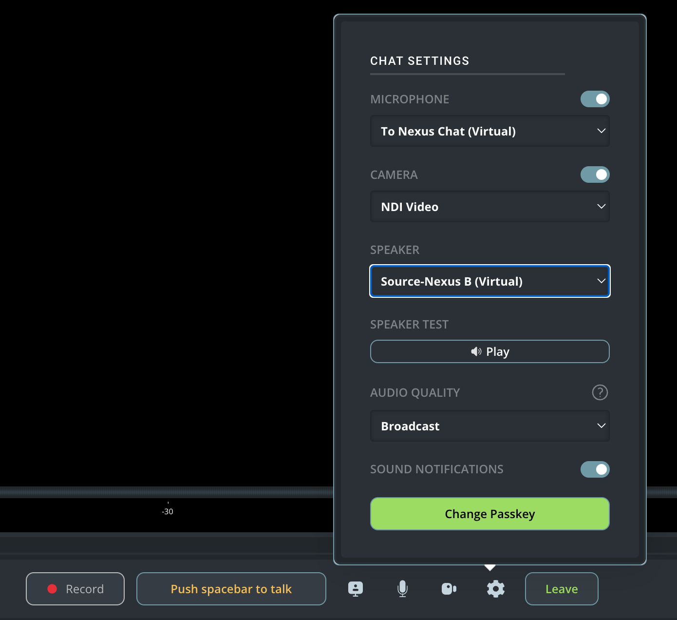 - En Source-Nexus Gateway , elija Source-Nexus B como salida de audio.