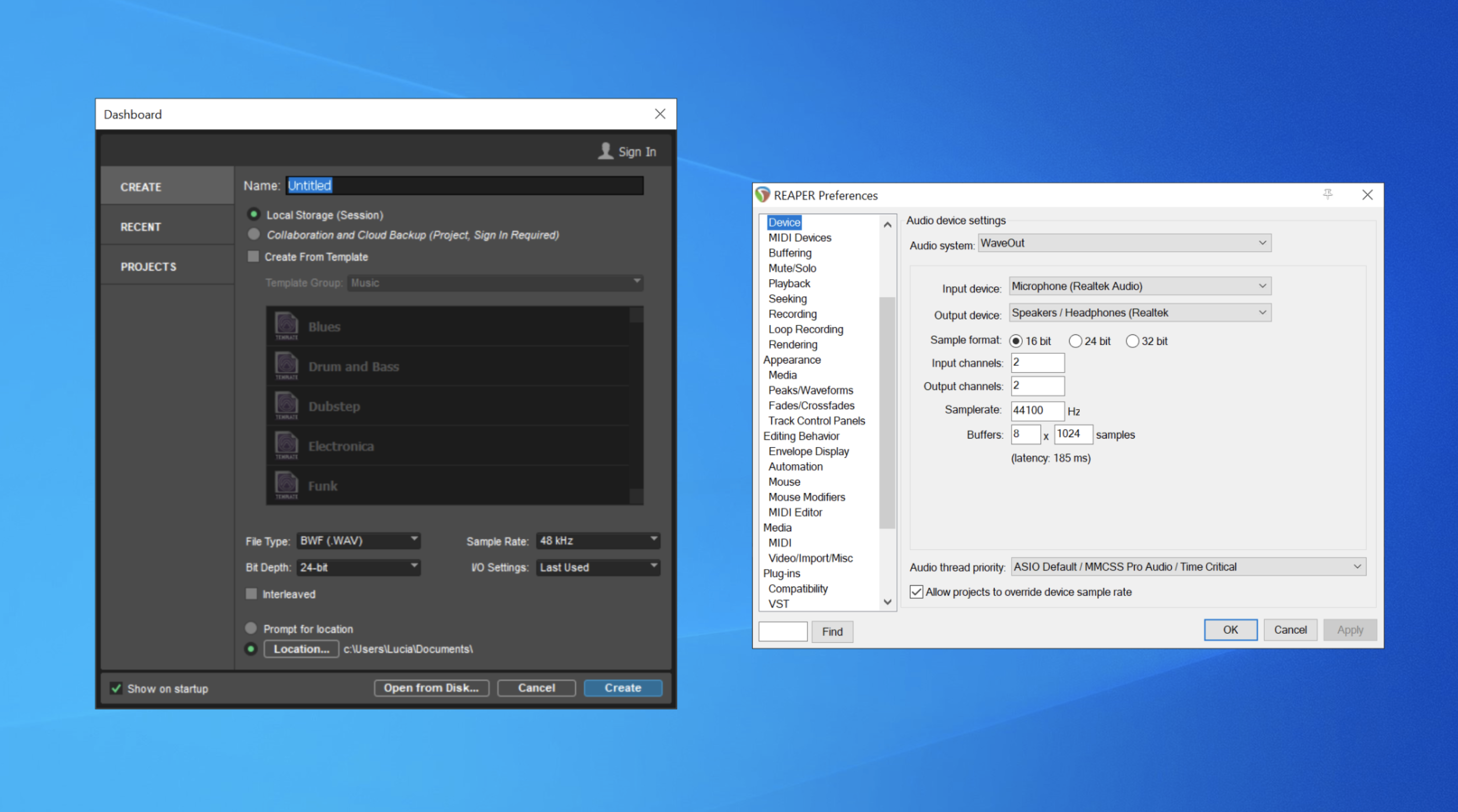 La siguiente imagen, por ejemplo, muestra el formato de muestra y la velocidad para diferentes sesiones en Pro Tools y Reaper . Tenga en cuenta que la profundidad de bits/formato de muestra y las frecuencias de muestreo son diferentes en ambas aplicaciones al crear una nueva sesión.