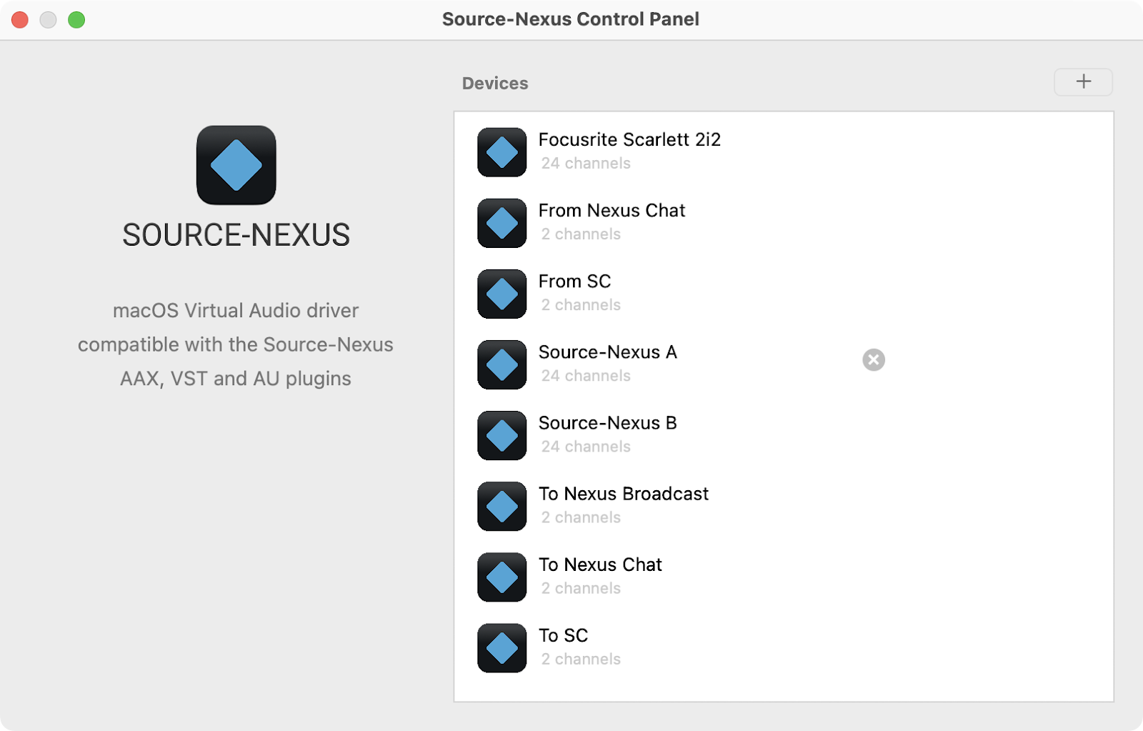 Para manejar la comunicación entre usted, sus clientes y el talento en Source-Connect, querrá crear dos dispositivos virtuales en el Panel de control de Source-Nexus: