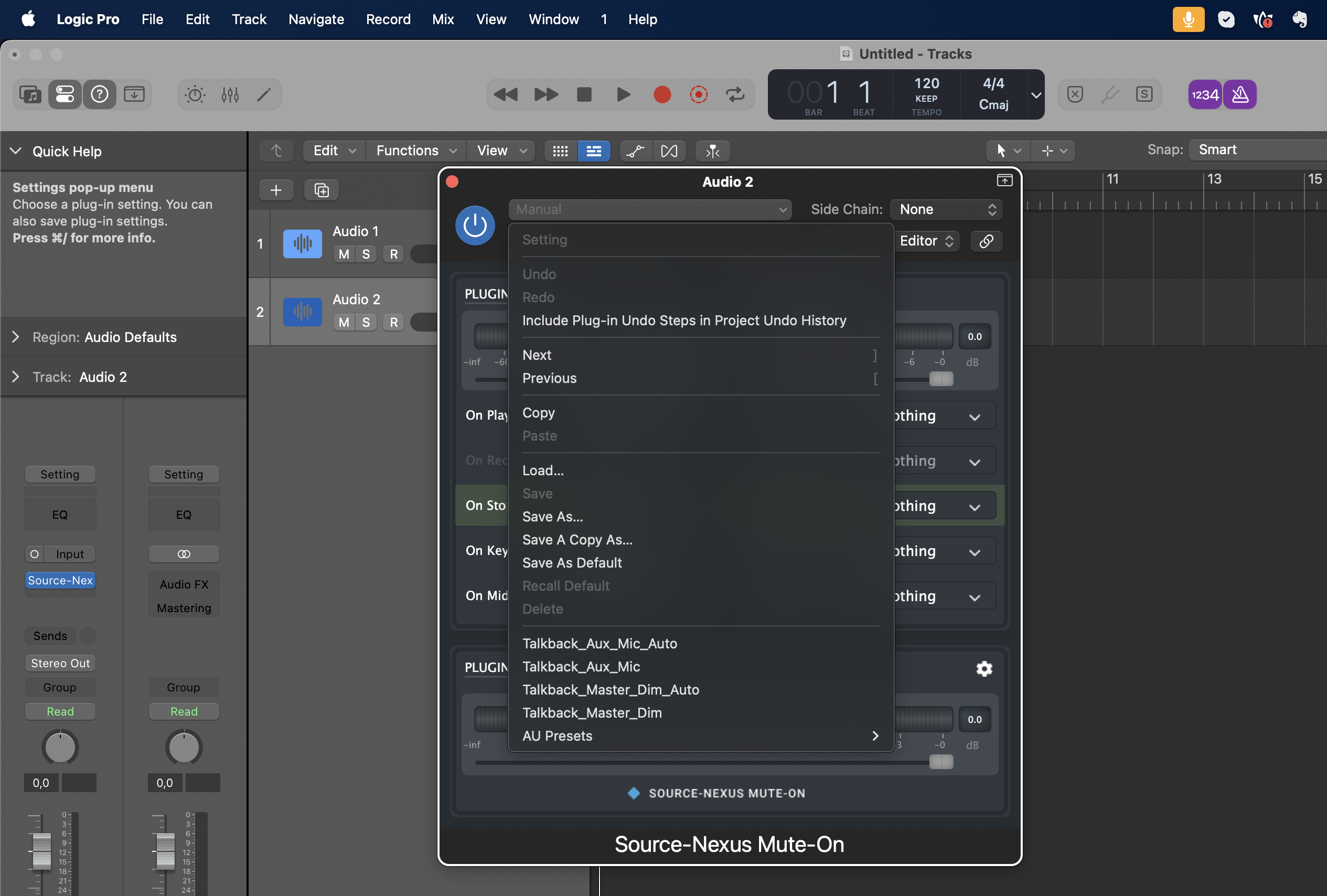 Uso de los ajustes preestablecidos de Source-Nexus Mute-On en su DAW
