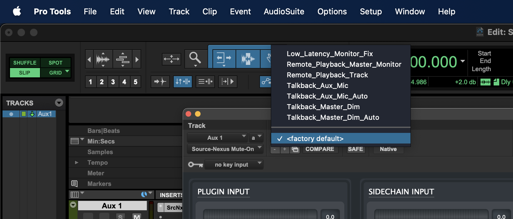 - Pro Tools desactiva los complementos en el modo de monitoreo de baja latencia; usar Mute-On con este ajuste preestablecido permite el monitoreo de baja latencia a través de su hardware con los complementos aún activos.