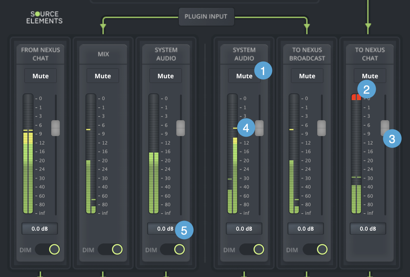 - Atenuación global : al hacer clic en el botón atenuar, se reducirá temporalmente el nivel de cualquier canal con el selector de atenuación activado en 15 dB para hacer que su conversación sea más audible sobre la mezcla y otro audio y para ayudar a evitar la retroalimentación. Mayús+abajo activa y desactiva la atenuación. Cuando se utiliza la tecla de barra invertida para controlar el interruptor de talkback, la atenuación se activa automáticamente cuando el talkback está abierto.