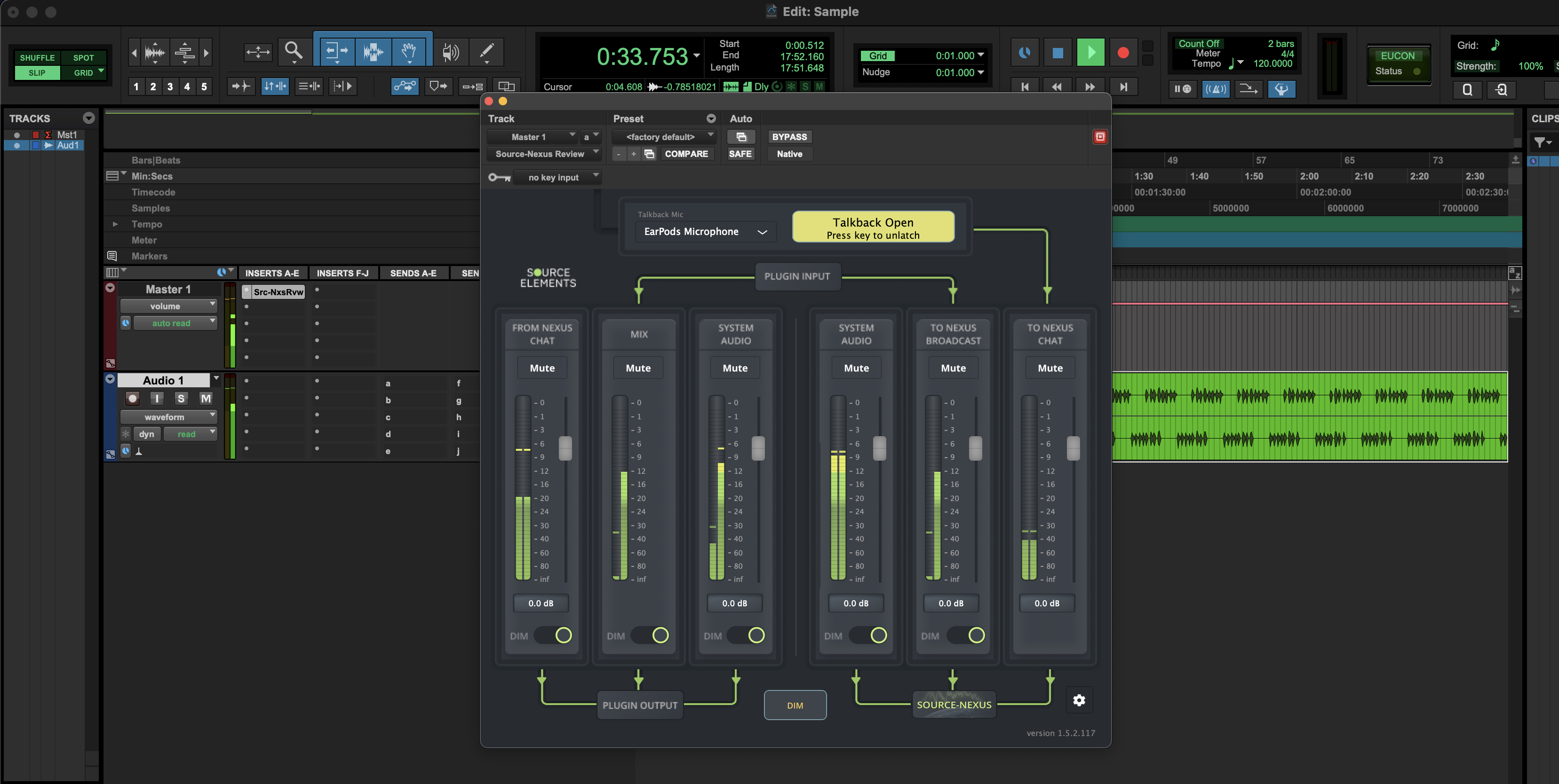 Source-Nexus Review proporciona un flujo de trabajo optimizado para sus sesiones remotas de revisión de mezclas. Puedes colocar el complemento en tu atenuador maestro y capturará las salidas maestras del audio que estás reproduciendo sin la necesidad de crear múltiples pistas y usar múltiples complementos.
