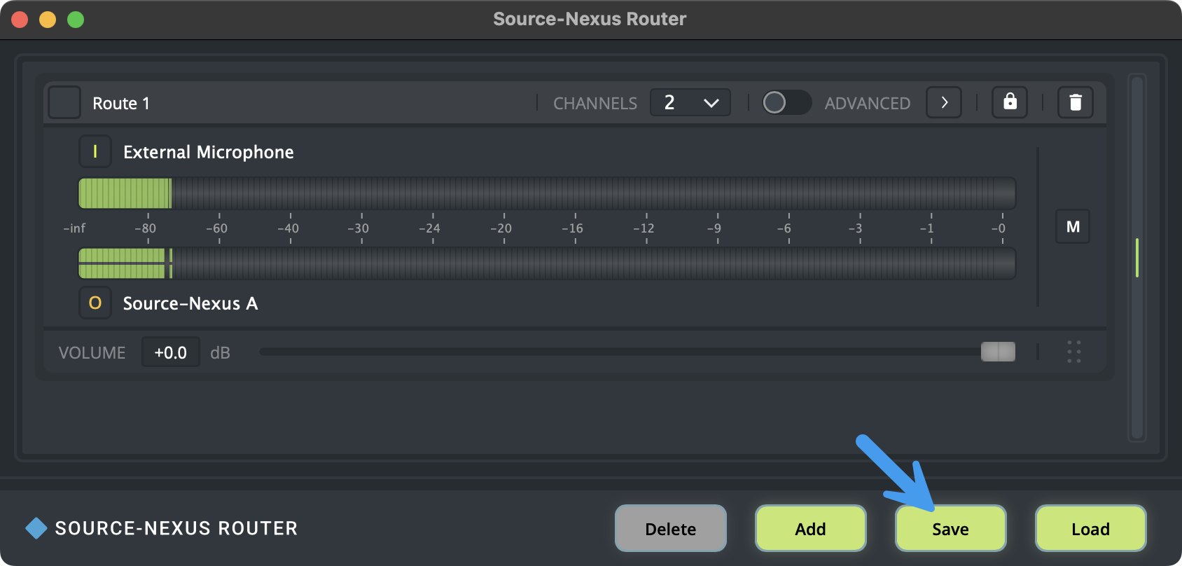 Nota : Tenga en cuenta que si comparte la ruta con un usuario diferente y este no tiene los mismos dispositivos de audio que usted, no podrá utilizar la ruta hasta que reemplace el dispositivo de audio de origen/destino en cuestión.
