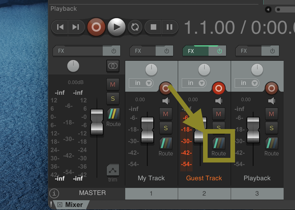 - At the bottom of the Reaper screen, click on the Guest track "Route" button.