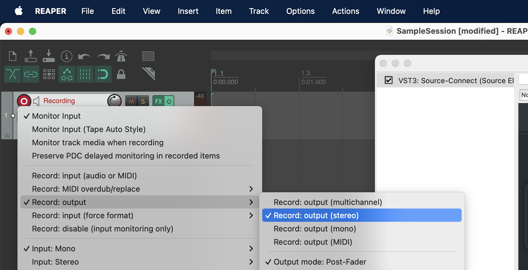 The following is a sample, step-by-step template that will ensure you can record incoming audio signal in Reaper and Restore/Replace in Source-Connect 4 Studio/Facility using the Source-Connect I/O plugin.