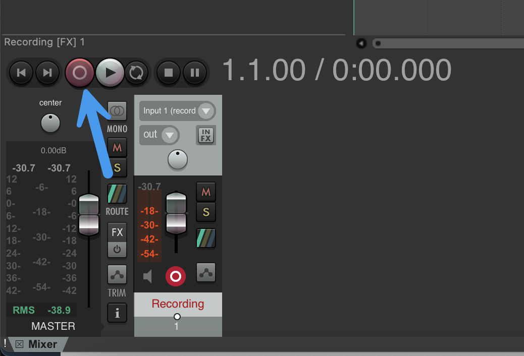 j. Right click the record arm button, then choose Record output > Record: output (stereo).