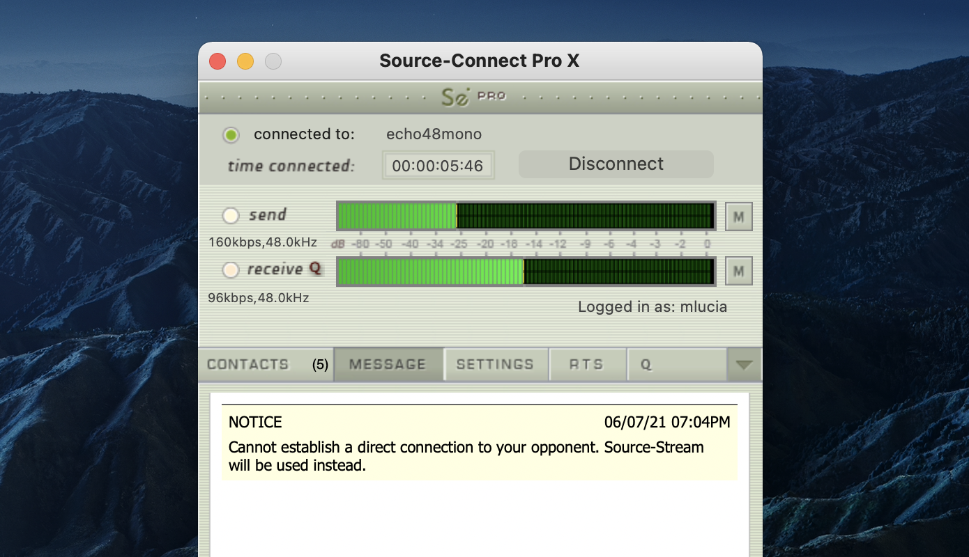 In Source-Connect Pro and Pro X, there are 5 settings you can configure: