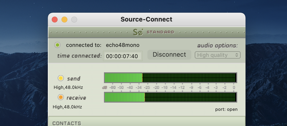 When you establish a session over Source-Connect the SEND and RECEIVE buttons will now be enabled in the RTS panel.