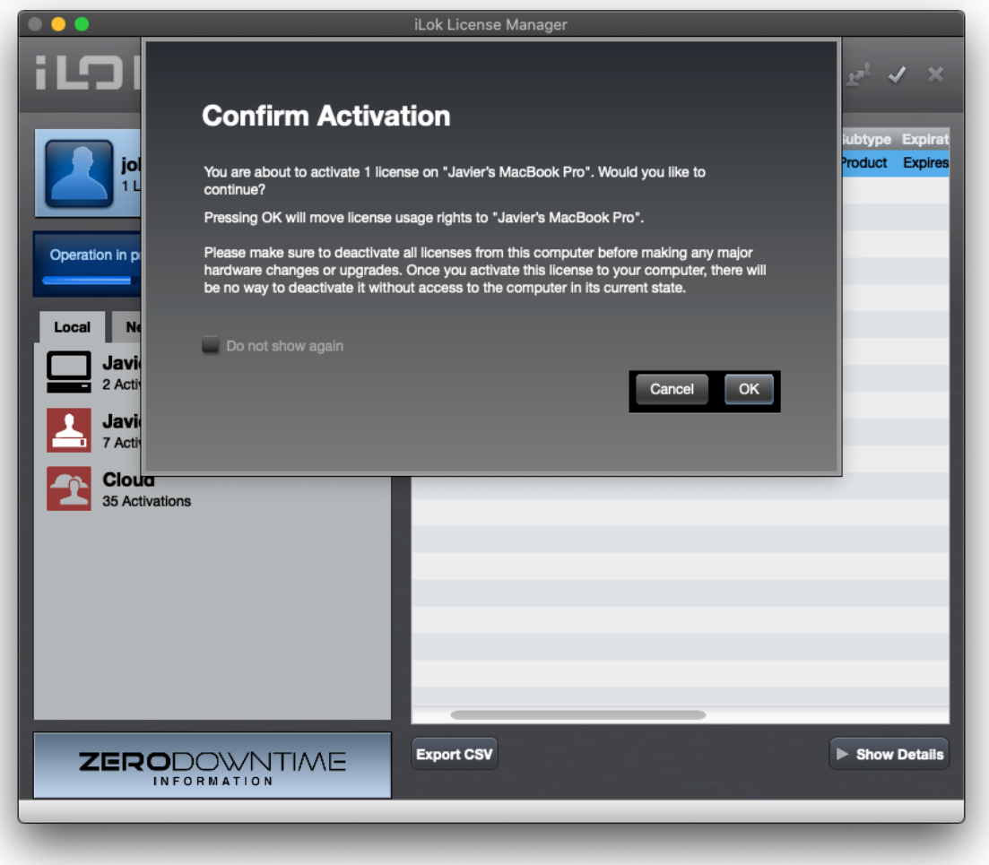 Si llegó al paso 11 desde el 8 porque ya tenía una cuenta de iLok, verá el siguiente mensaje pidiéndole que active su licencia o prueba cuando abra la aplicación. Tan sólo haga clic en “Activate” e ingrese con su cuenta ya existente de iLok.