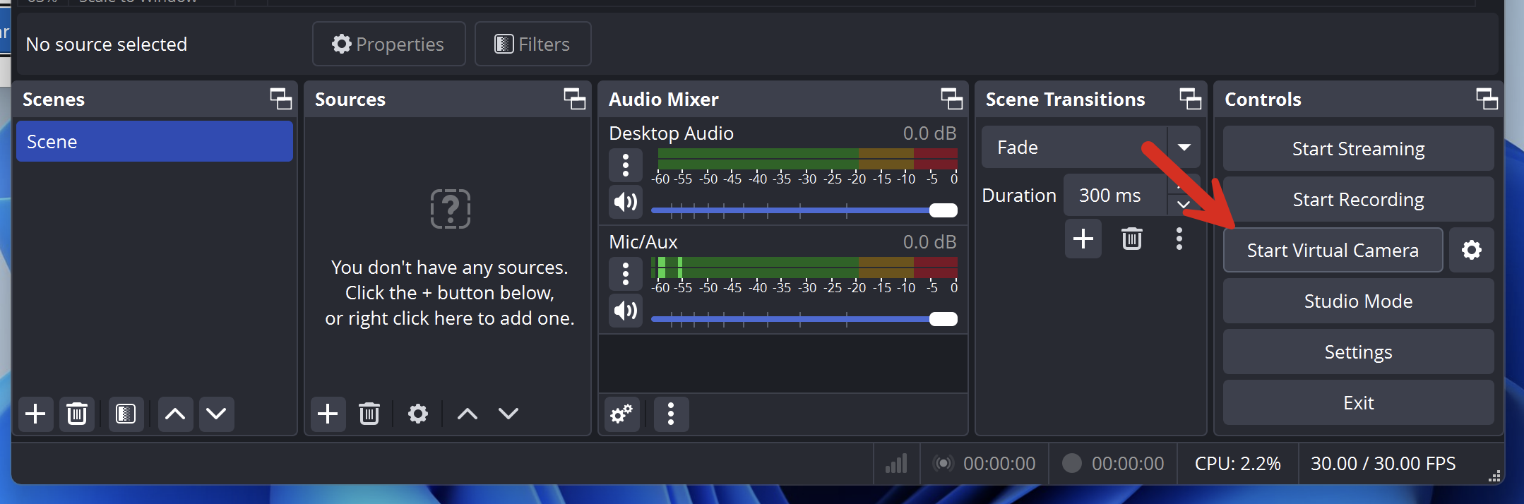 - Abre la aplicación. Luego, haga clic en "Iniciar cámara virtual".