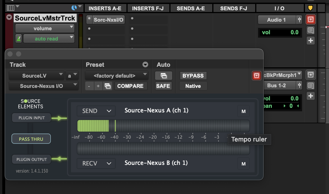 - Add the Source-Nexus I/O plug-in to your auxiliary track where you will route the audio you want to send to Source-Live Pro LL.