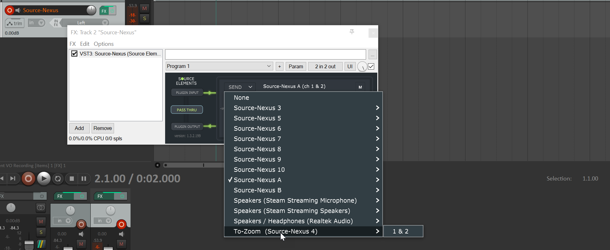 In a DAW, the Nexus I/O device will be named "To-Zoom (Source-Nexus 4)" and "From-Zoom (Source-Nexus 4").