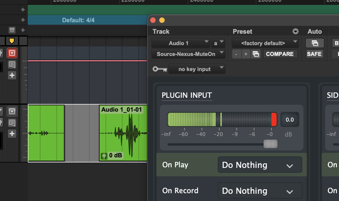 Clipping, on the other hand, indicates that the level of audio being played through the channel strip has surpassed the level that digital audio can handle. If the level meter moves into the orange or red areas of the meter, you are likely to experience sound distortions and a lower quality for your signal. The picture below, for example, shows that the plugin’s input clipped at some point (since it reached the highest possible dB level), but has since returned to normal.