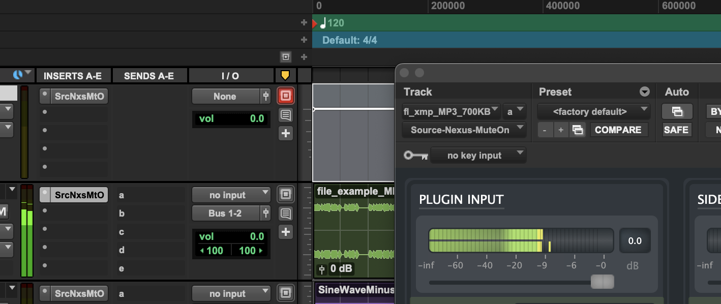 Since the Source-Nexus Mute-On plugin supports mono, stereo, and surround sound, you will see that the peak hold indicators appear as single lines on each of the channels next to the level meter, which will allow you to have a clear view of the highest levels caught by Source-Nexus Mute-On throughout your mix.