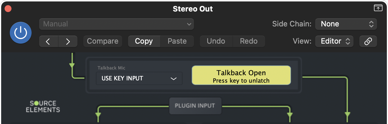 To use the key input/side-chain from the plugin as your talkback mic, open the Talkback mic dropdown and select “USE KEY INPUT”. After selecting it, all new instances of the Source-Nexus Review plugin will automatically default to this input, so you will only need to set it one time.